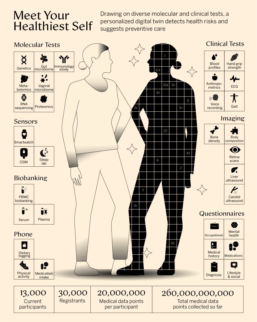 Lançado em 2018, o projeto já monitora milhares de voluntários, que se submetem a avaliações médicas completas a cada dois anos. Mais de 13 mil participantes já forneceram dados clínicos, genéticos, metabólicos e de estilo de vida, e mais de 30 mil pessoas estão inscritas para integrar o estudo. A meta é chegar a 100 mil participantes, incluindo dados do Japão e dos Emirados Árabes Unidos, ampliando a diversidade étnica, ambiental e cultural da pesquisa.