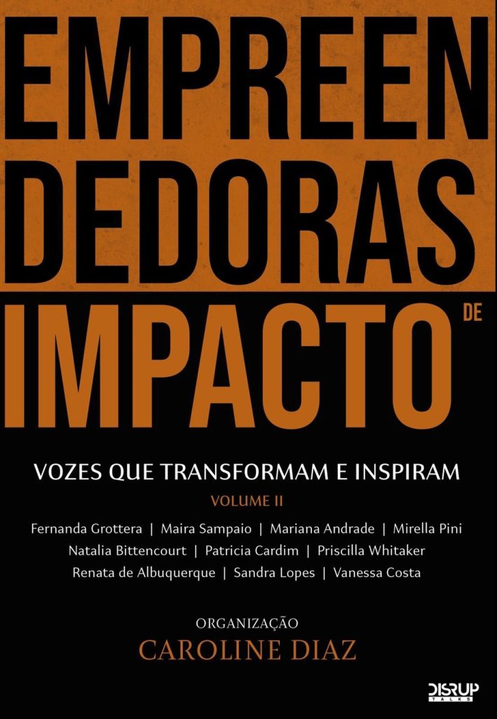 Neste segunda volume de Empreendedoras de Impacto, o leitor encontrará histórias inspiradoras de: Fernanda Grottera, consultora de ESG especializada em hotelaria e turismo, Maira Sampaio, médica nutróloga, com especialização em Medicina do Tráfego e Pediatria, Mariana Andrade, advogada e CEO do Hospital Pari, Mirella Pini, CEO da Pini Personalizados, Natália Bittencourt, jornalista e CEO da Trio Bagunça Festas, Patricia Cardim, Diretora-Geral do Centro Universitário Belas Artes de São Paulo, Priscilla Whitaker, diretora criativa e fundadora na Priscilla Whitaker Shoes, Renata de Albuquerque, idealizadora da RDA Comunicação Corporativa, Sandra Lopes, sócia da Lopes & Castelo Sociedade de Advogados, Vanessa Costa, fundadora da Registro e Memória – Comunicação e Gestão da Informação, consultoria em ESG e comunicação estratégica.